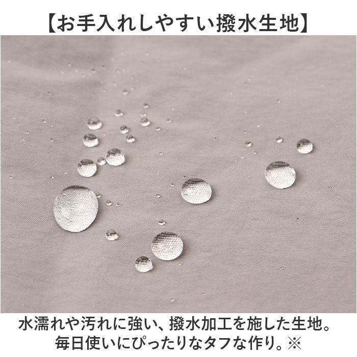 ・水濡れや汚れに強い、撥水加工を施した生地。毎日使いにぴったりなタフな作り。