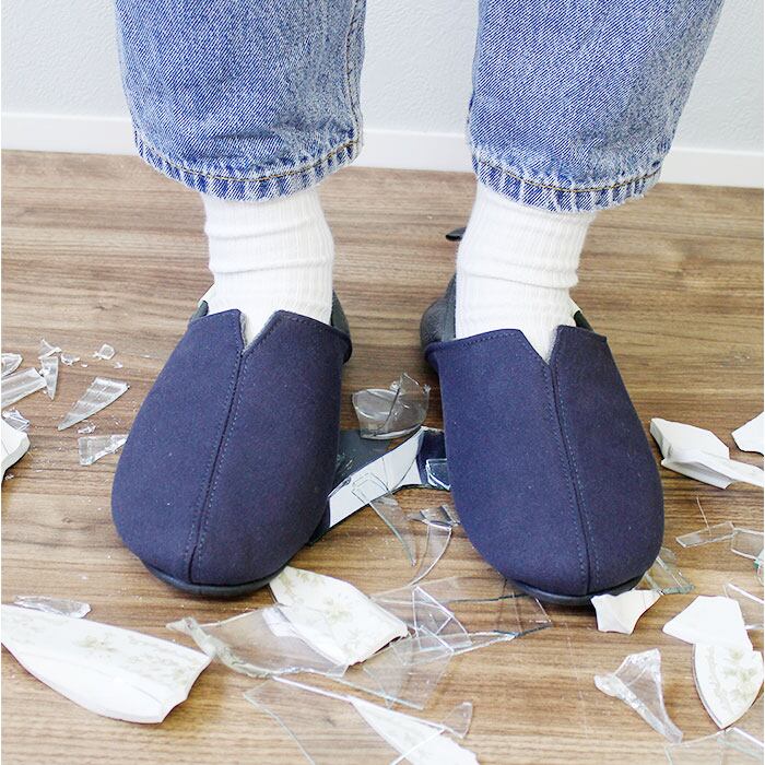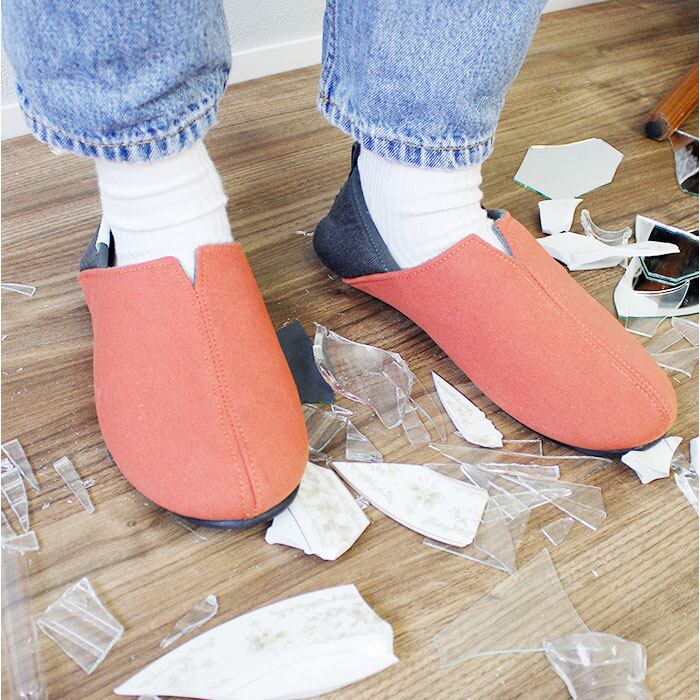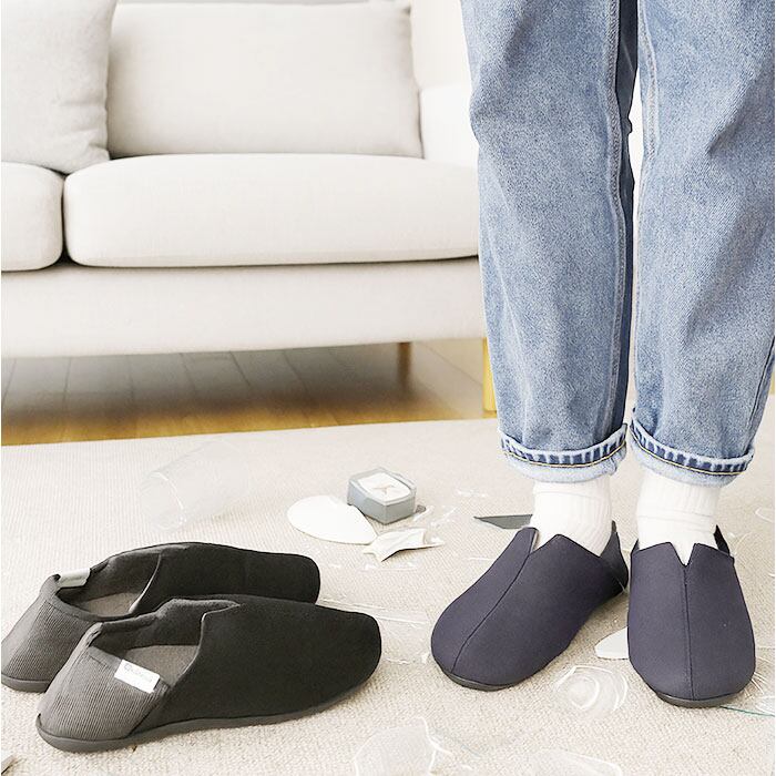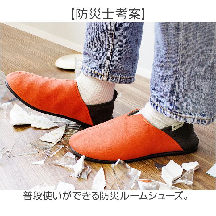 ・かかとを踏んでスリッパに、非常時はかかとを戻してしっかり履けるから日常も防災時も〇