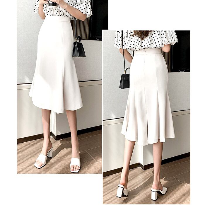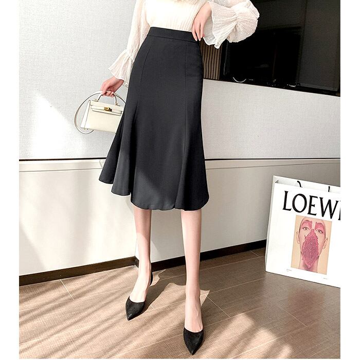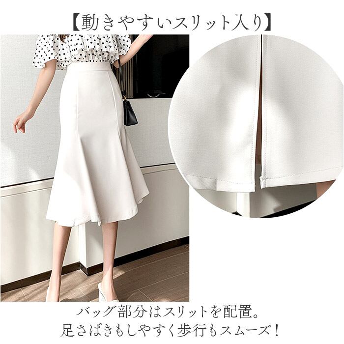 ・オフィスにもデートにも使える万能ミモレ丈スカート。
