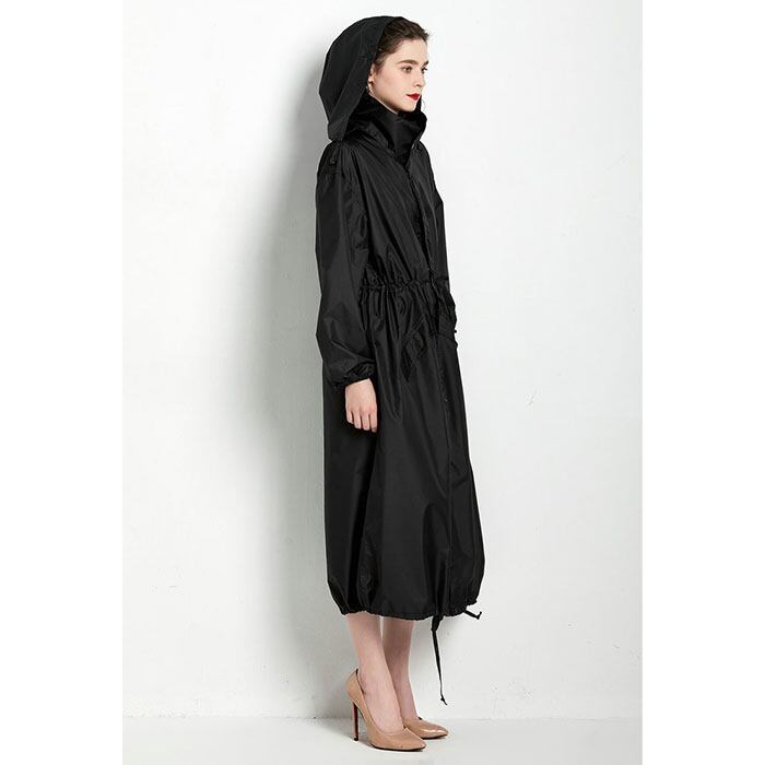 ・フードの絞りで雨風から顔をしっかり守る。使わない時は畳んで収納できる◎