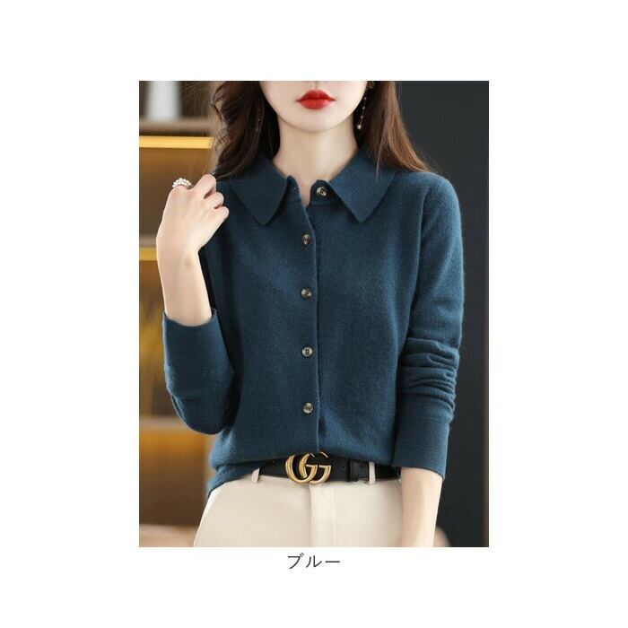 ・着るだけで洗練された印象に仕上がる襟付き ニットカーディガン。