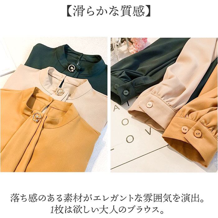 ・落ち感のある素材がエレガントな雰囲気を演出。1枚は欲しい大人のブラウス。