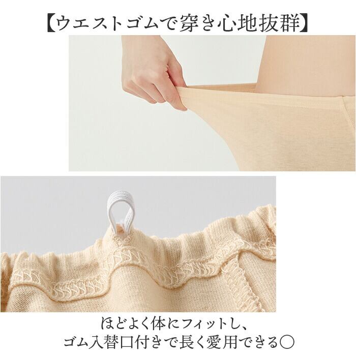 ・ほどよく体にフィットし、ゴム入替口付きで長く愛用できる〇