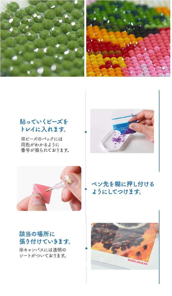 ・※キャンバスの番号とビーズのパックにある番号は連動しておりません。カラーを探しながら楽しむタイプとなっております。