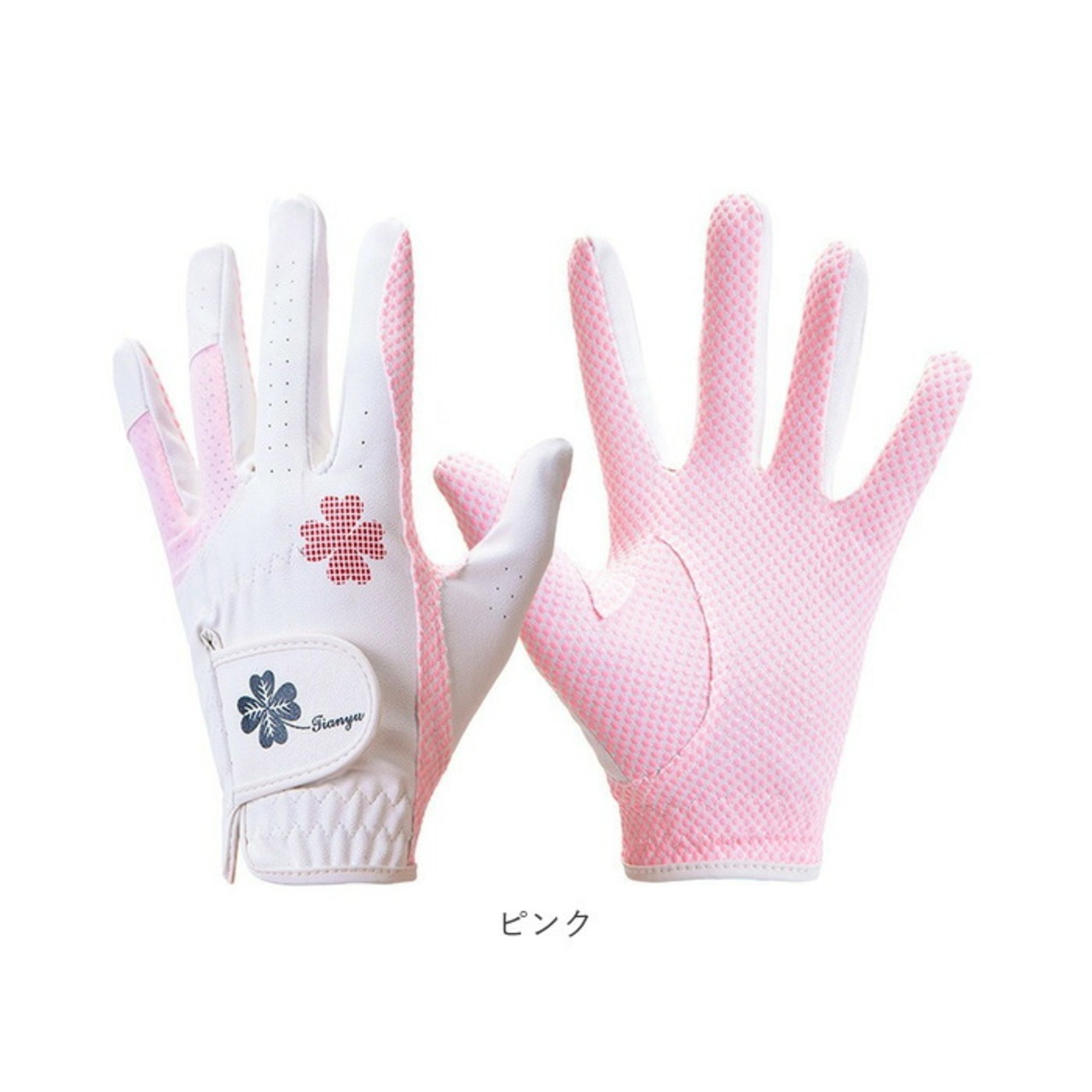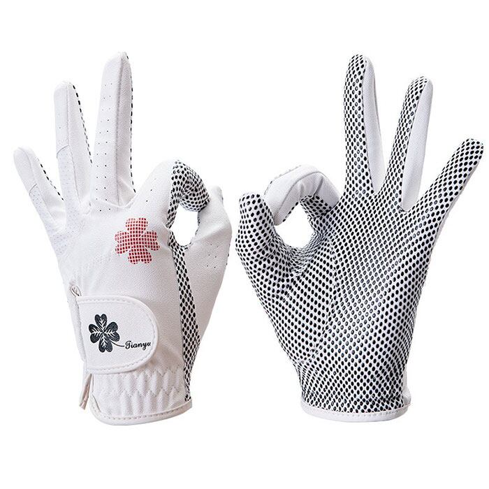 ・通気性と伸縮性を兼ね備えた両手用ゴルフグローブ。