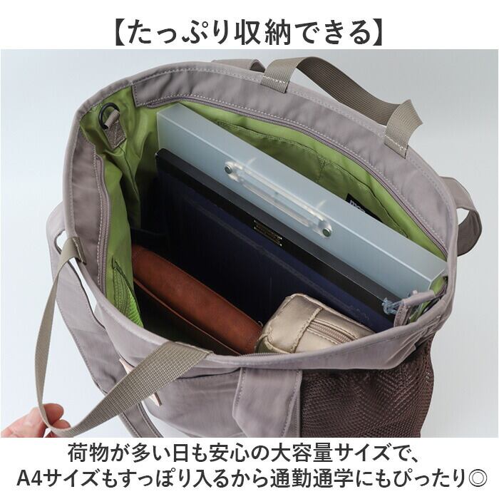 ・荷物が多い日も安心の大容量サイズで、A4サイズもすっぽり入るから通勤通学にもぴったり◎