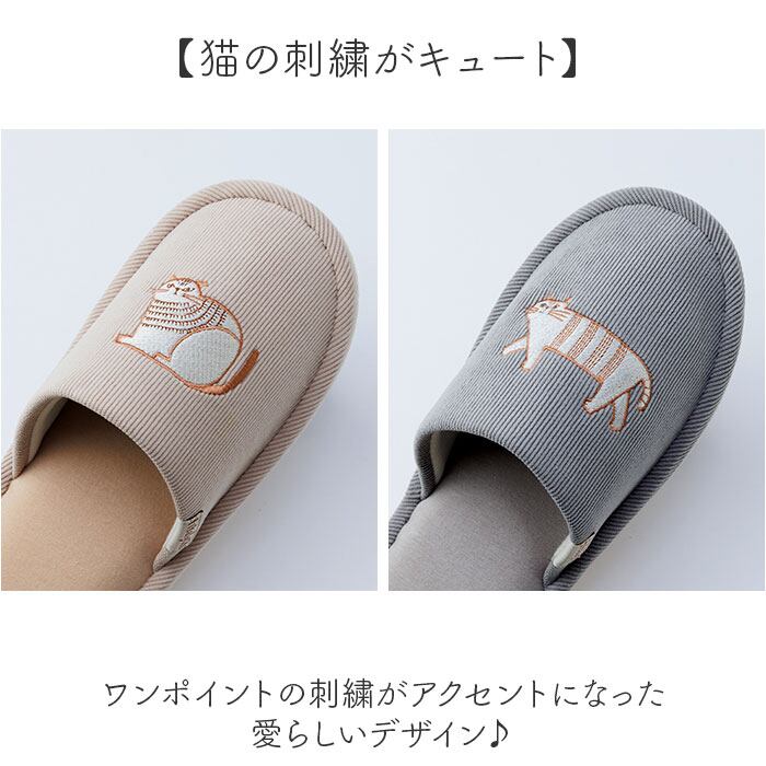 【低反発でふんわり履き心地】猫がかわいい「fika lyckaコーデュロイスリッパ」