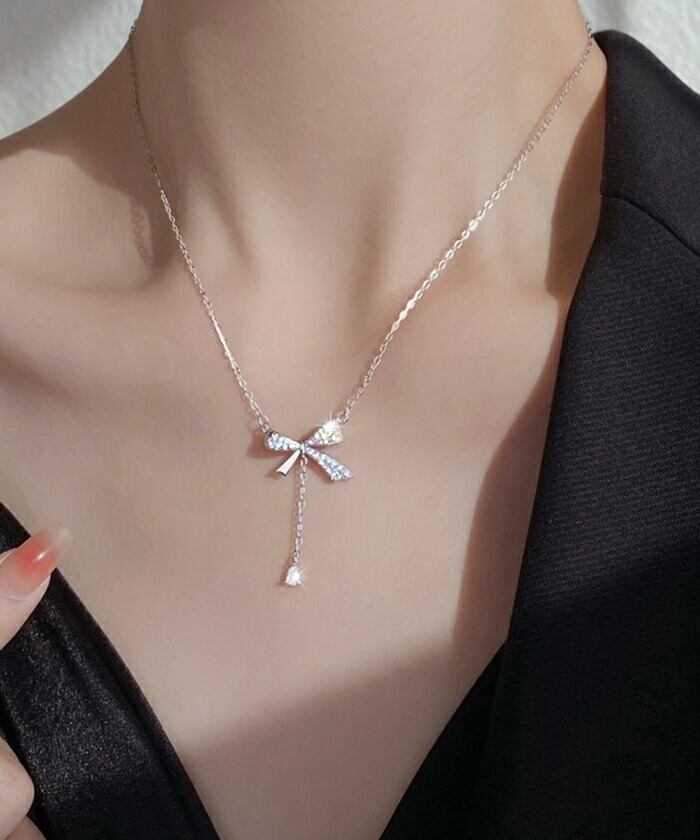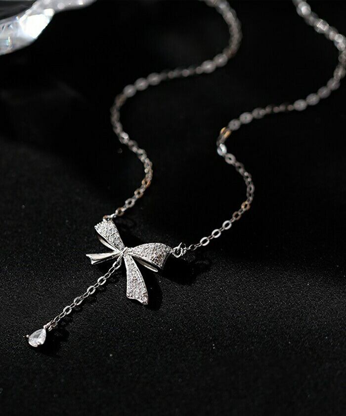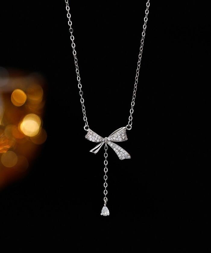 ・シルバーのリボンモチーフが上品さを添え、大人可愛い雰囲気に。