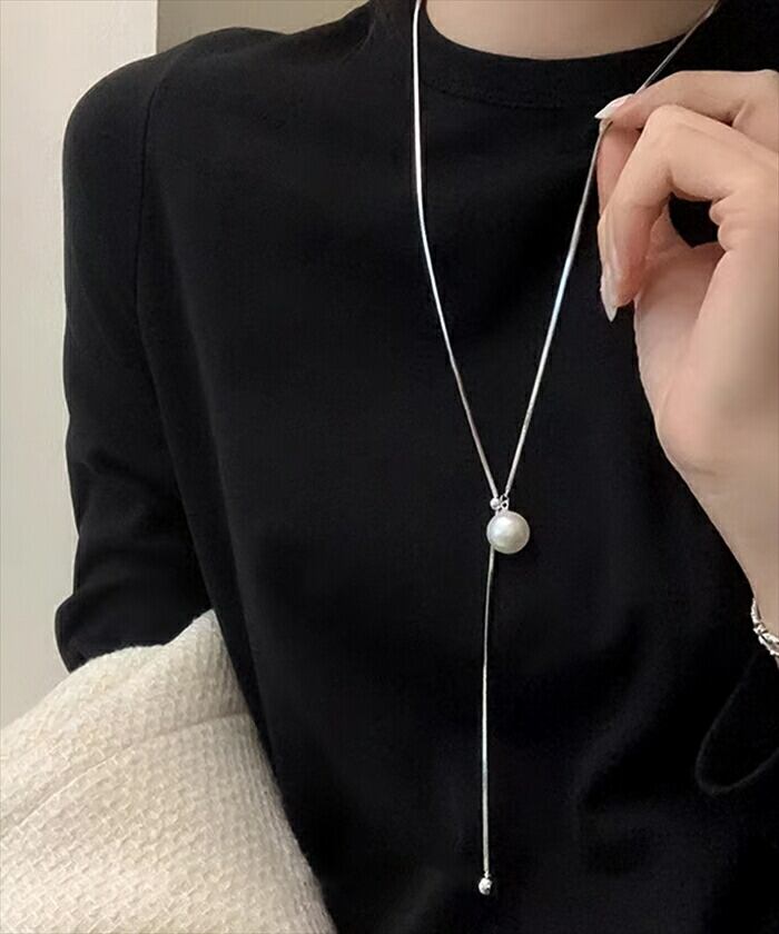 ・自由にパールを動かして好みのシルエットに調節ができるYラインのシルエットが美しいループタイネックレス。