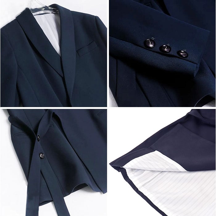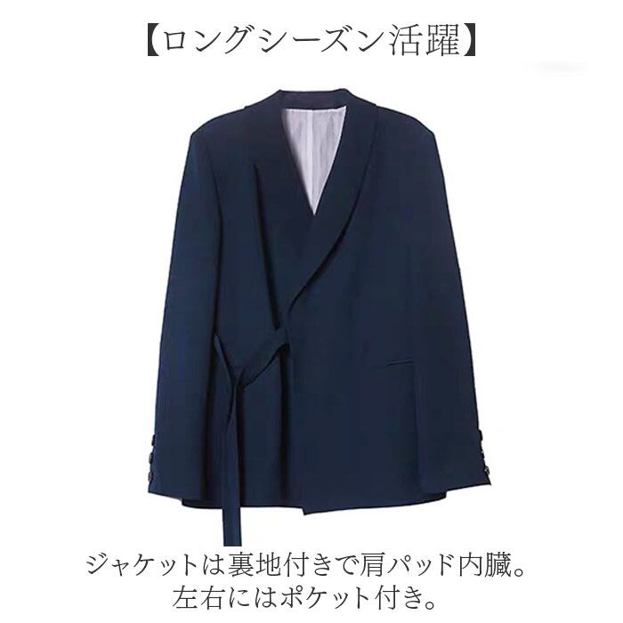 ・ジャケットは裏地付きで肩パッド内臓。左右にはポケット付き。