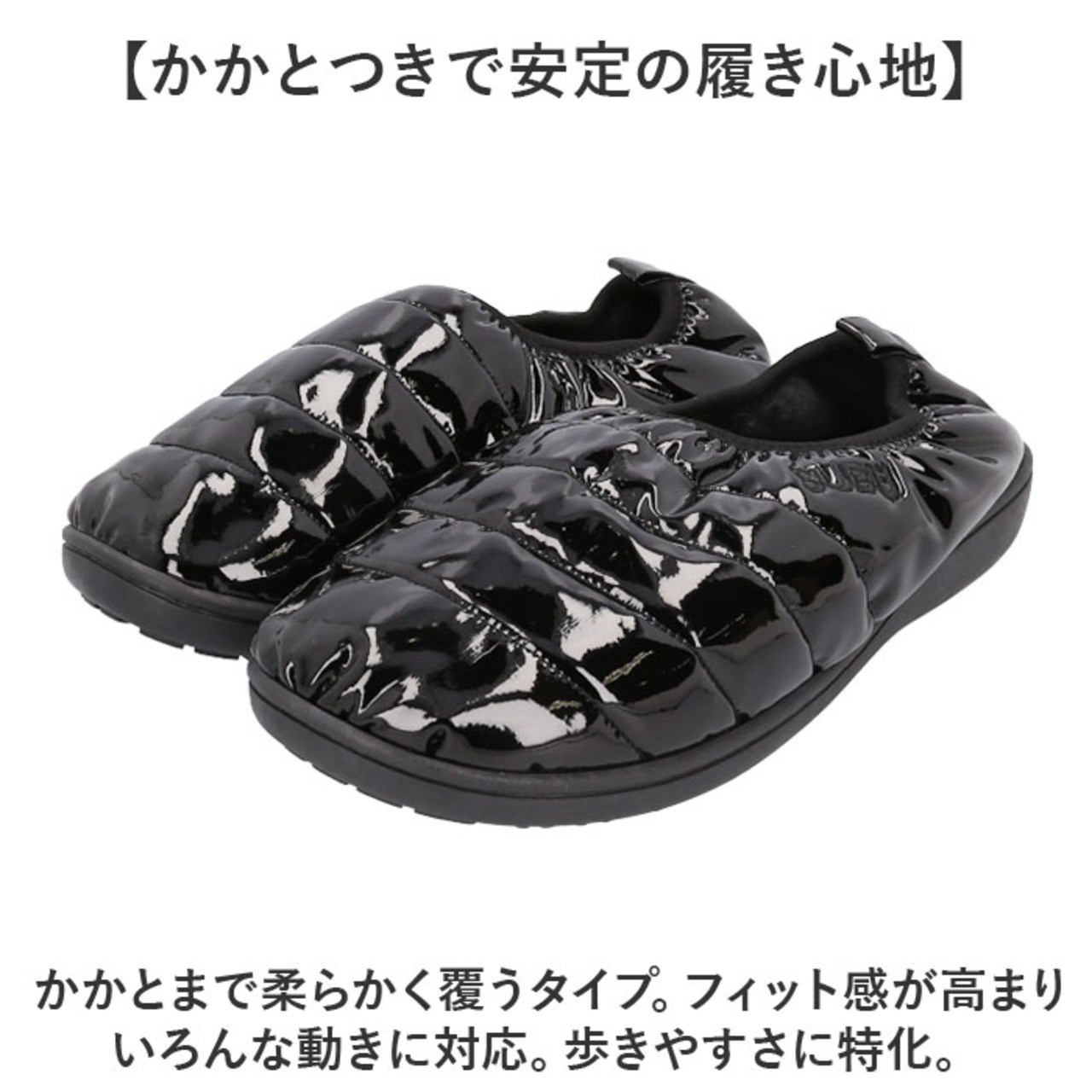 【かかとつきで安定の履き心地】