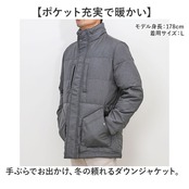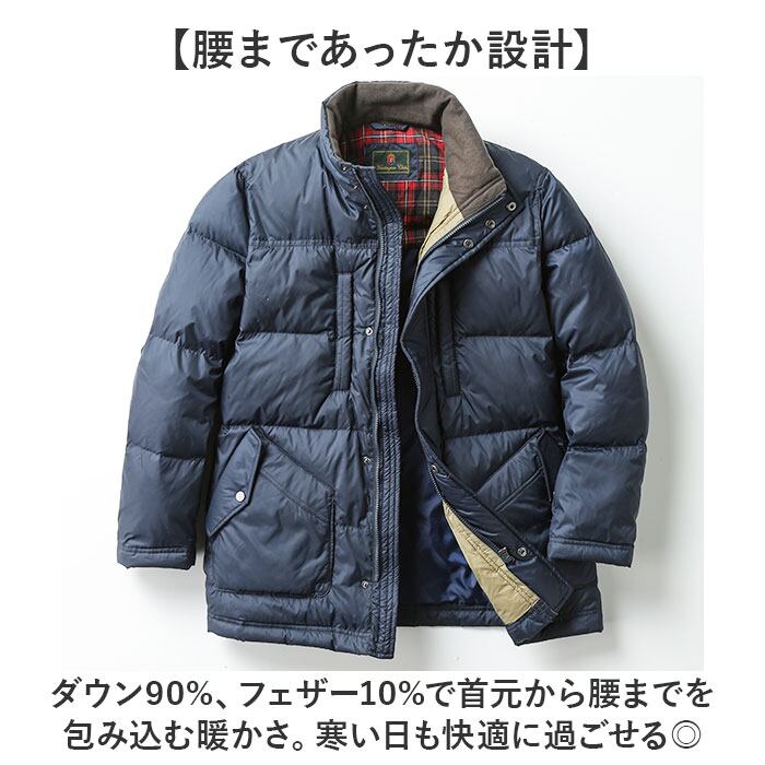 ・ダウン90%、フェザー10%の充填物で首元から腰まで全身を包み込む暖かさ。寒い日のお出かけも快適に過ごせる◎