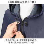 ・首元のドローコードで調整できるから、雨風の浸入をしっかりブロック。