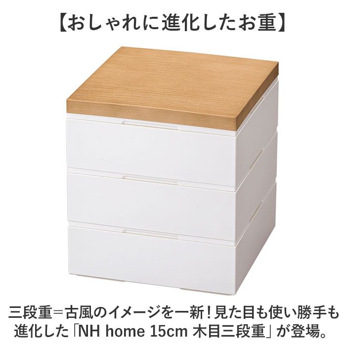 ・三段重=古風のイメージを一新!見た目も使い勝手も進化した「NH home 15cm 木目三段重」が登場。