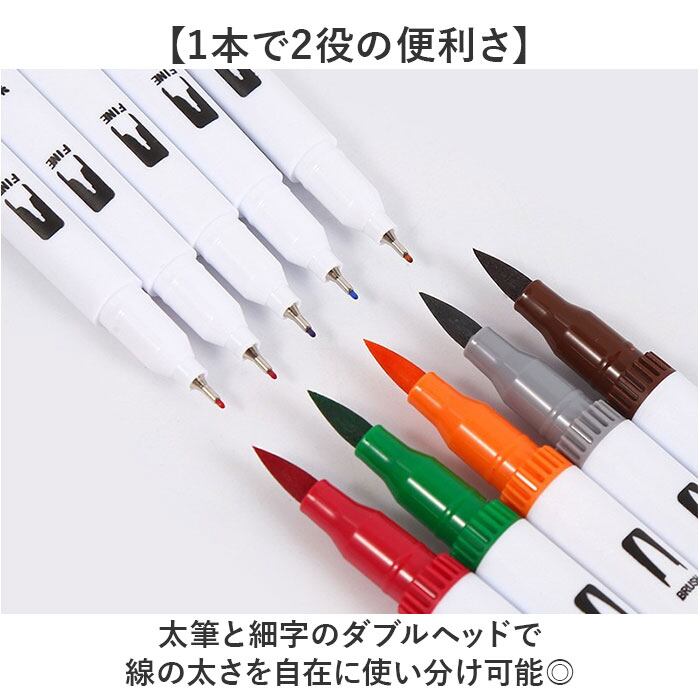 ・太筆と細字が使える水彩タイプのカラー筆ペンセット。