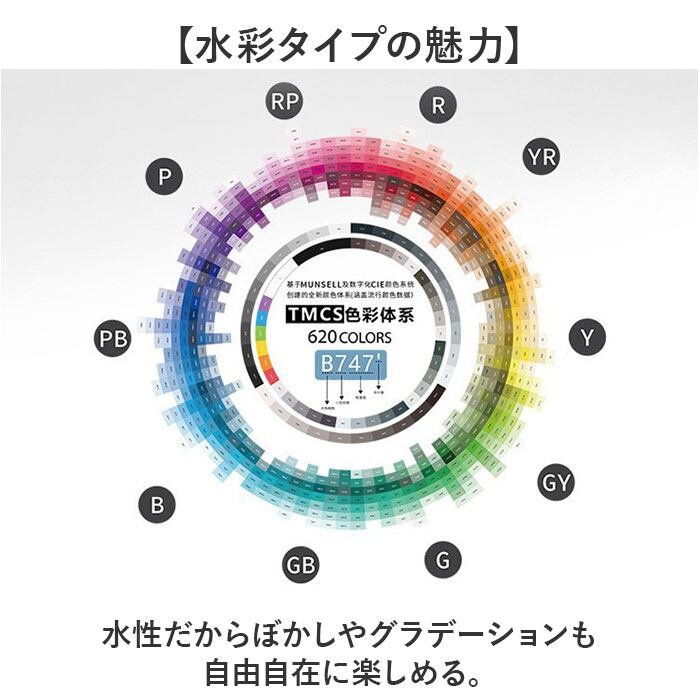 ・水性だからぼかしやグラデーションも自由自在に楽しめる。