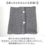・奥行きのある立体感な織り方で、空気をたっぷり含んだやわらかい風合いがポイント。動物繊維なのにチクチクしない。