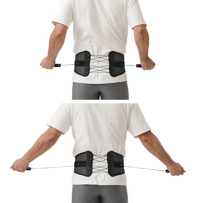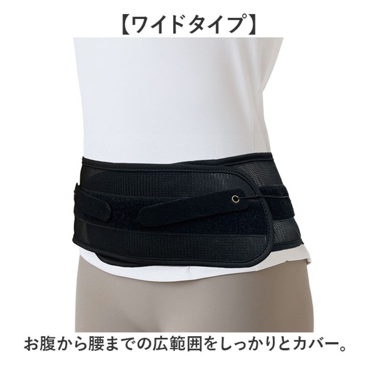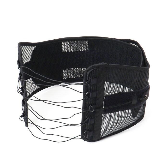 ・引っ張るだけで腰を安定させる、編み上げ式腰ベルトワイドタイプ。