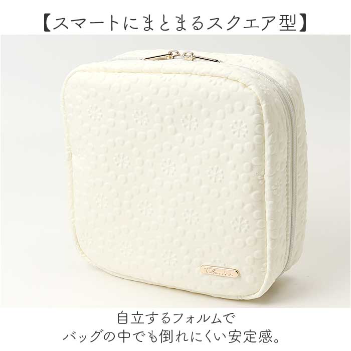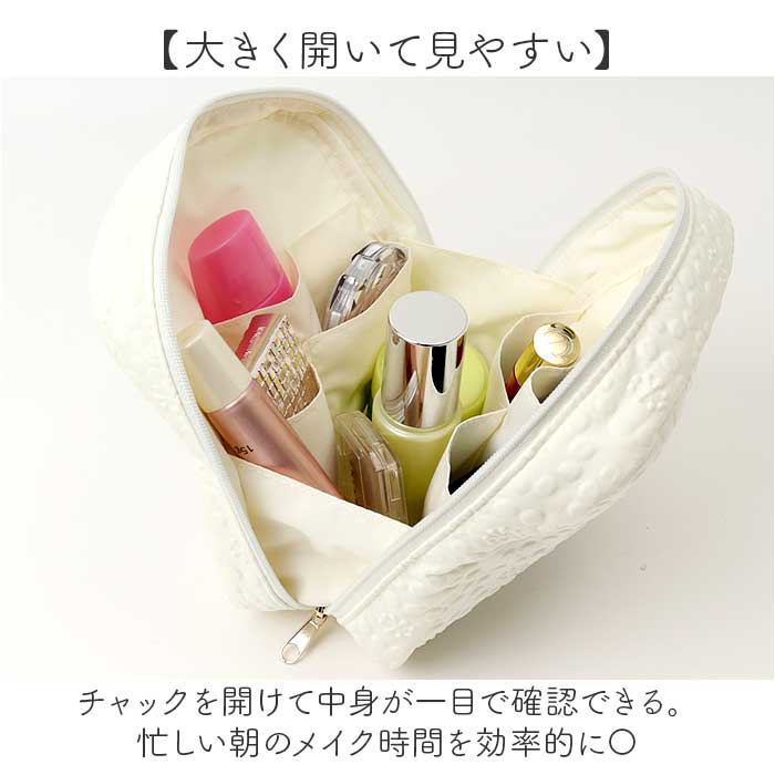 ・チャックを開けて中身が一目で確認できる。忙しい朝のメイク時間を効率的に〇
