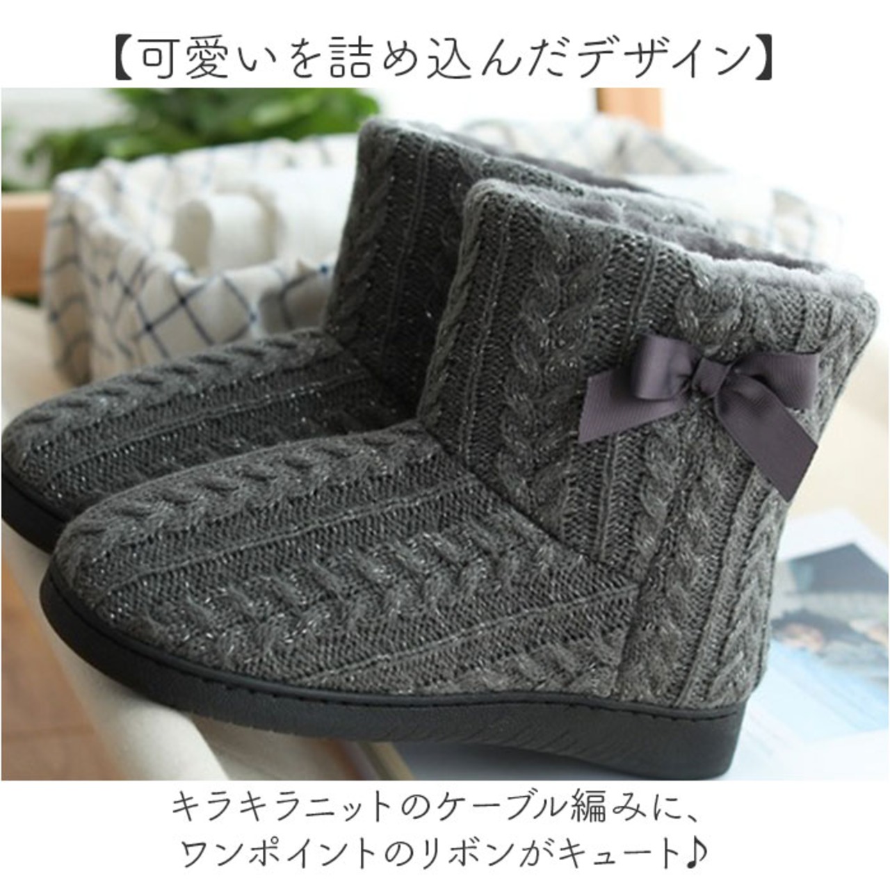 ・キュートなルームブーツで足元温かく寒さ知らず。