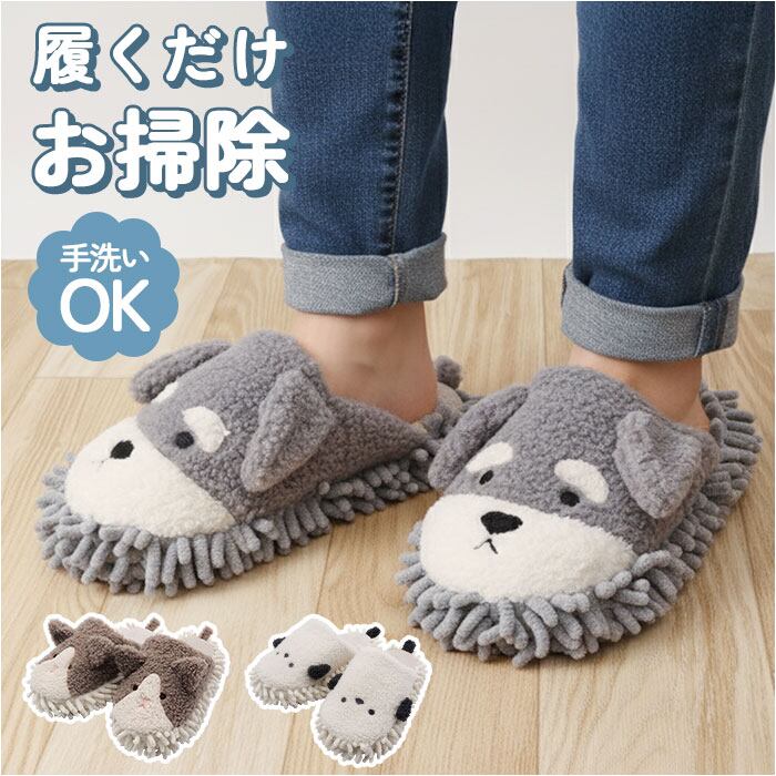 モップスリッパ かわいい 通販 アニマルモップスリッパ お掃除スリッパ 洗える ルームシューズ 室内履き モップ お掃除 室内 掃除 床掃除 フローリング お掃除グッズ インテリア 生活雑貨 日用品 雑貨 便利グッズ