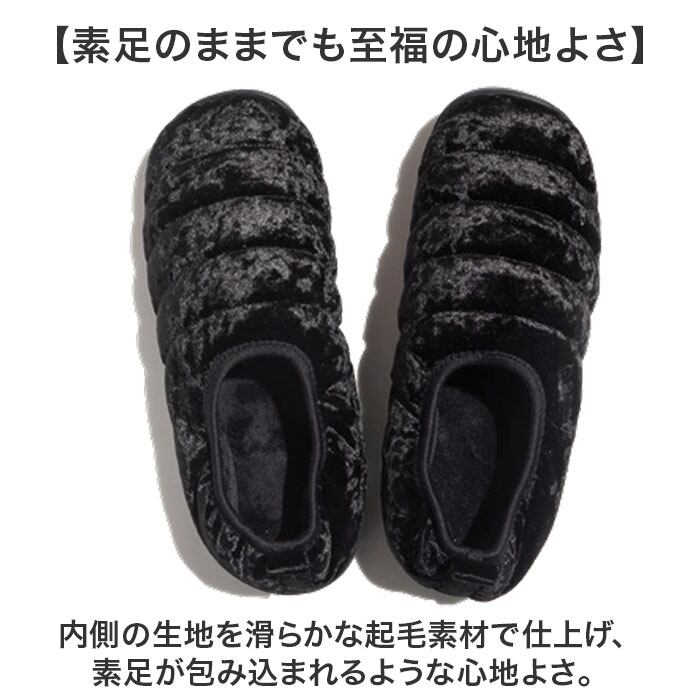・ラグジュアリーな艶感とぬくもりを兼ね備えたベルベット素材。冷え込む朝も暖かな履き心地!