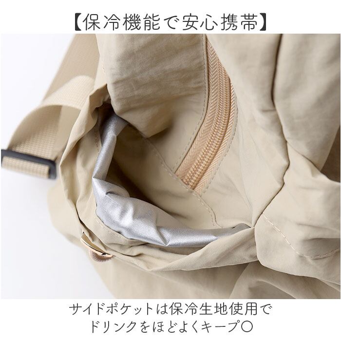 ・サイドポケットは保冷生地使用でドリンクをほどよくキープ〇