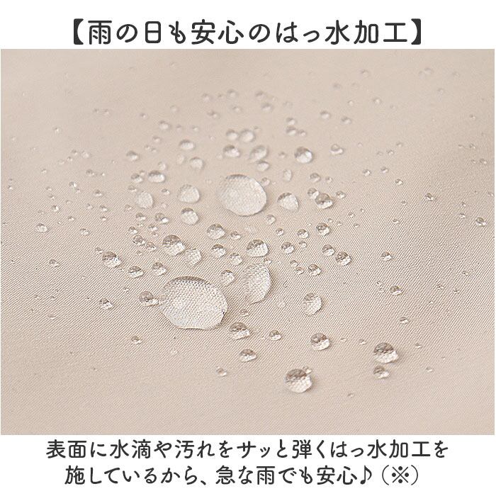 ・表面に水滴や汚れをサッと弾くはっ水加工を施しているから、急な雨でも安心♪