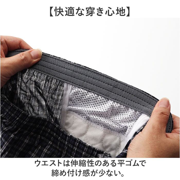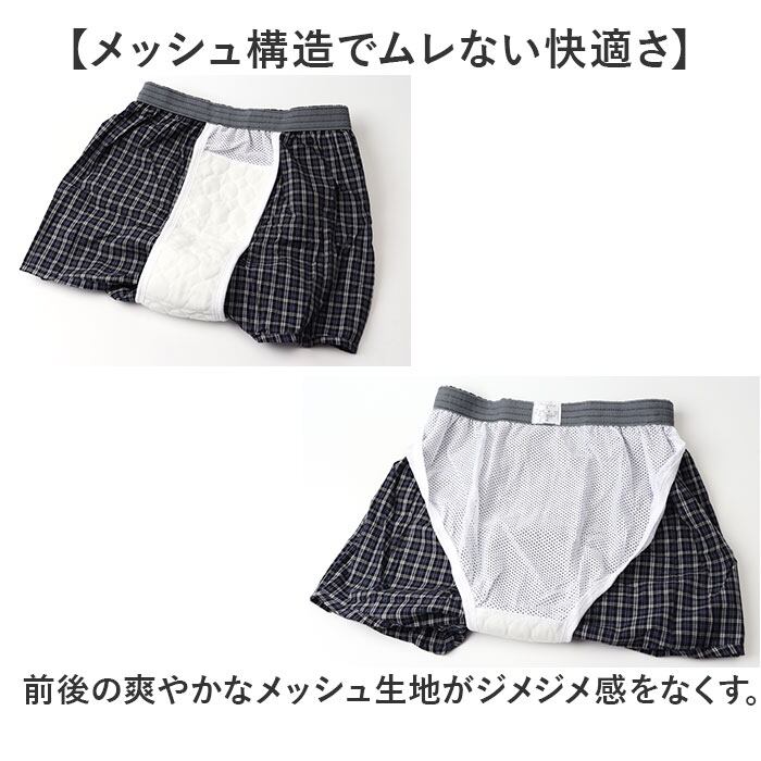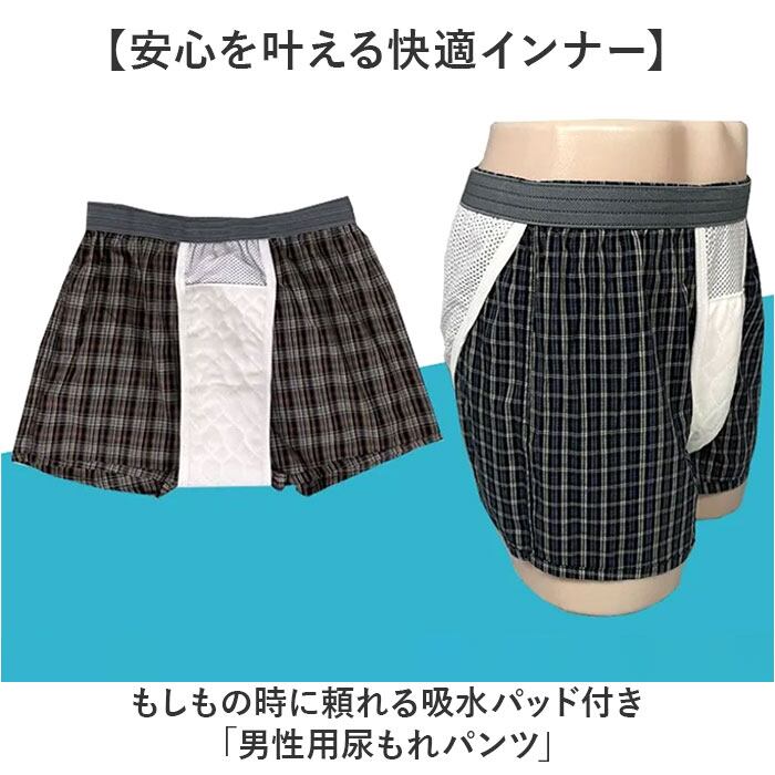 ・もしもの時に頼れる吸水パッド付き「男性用尿もれパンツ」。