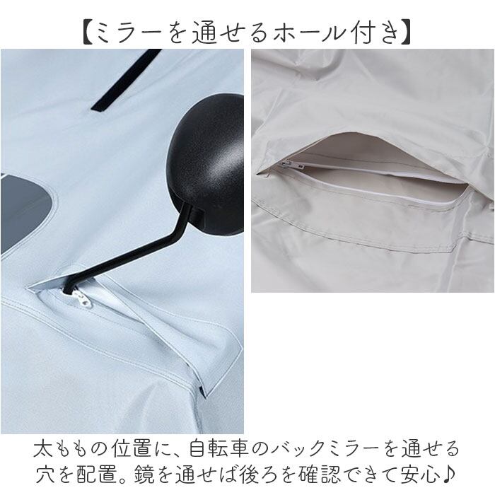・太ももの位置に、自転車のバックミラーを通せる穴を配置。鏡を通せば後ろを確認できて安心♪