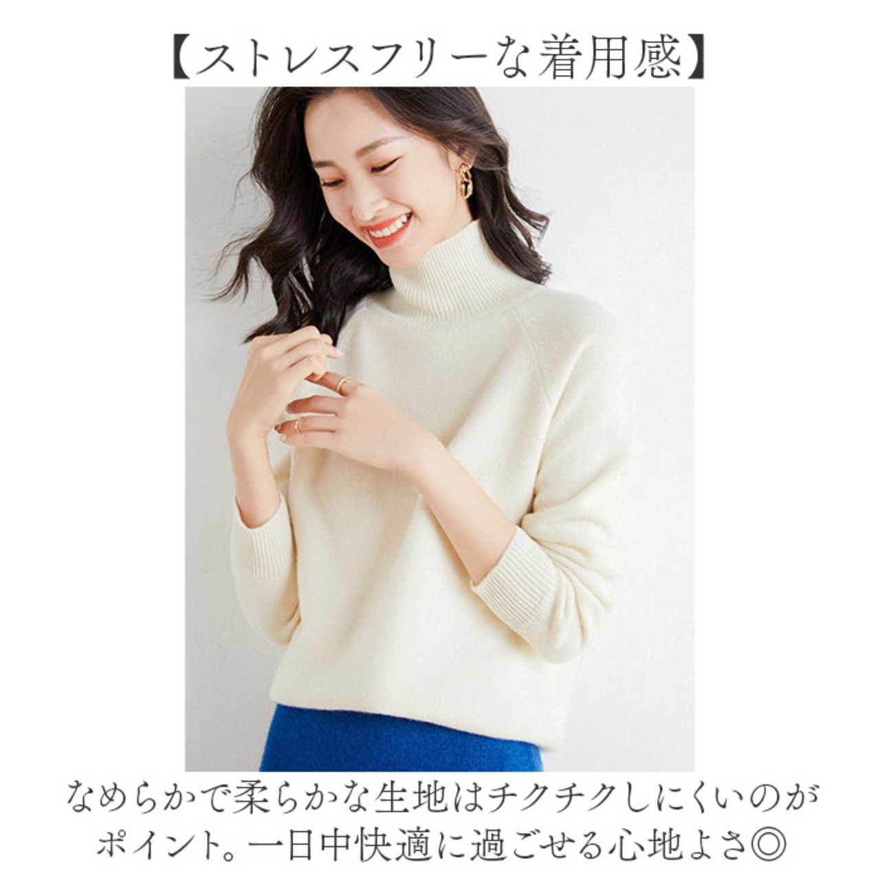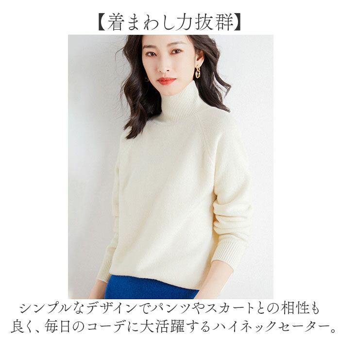 ・シンプルなデザインでパンツやスカートとの相性も良く、毎日のコーデに大活躍するハイネックセーター。