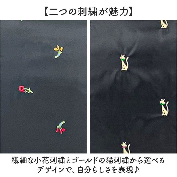 【二つの刺繍が魅力】繊細な小花刺繍とゴールドの猫刺繍から選べるデザインで、自分らしさを表現♪