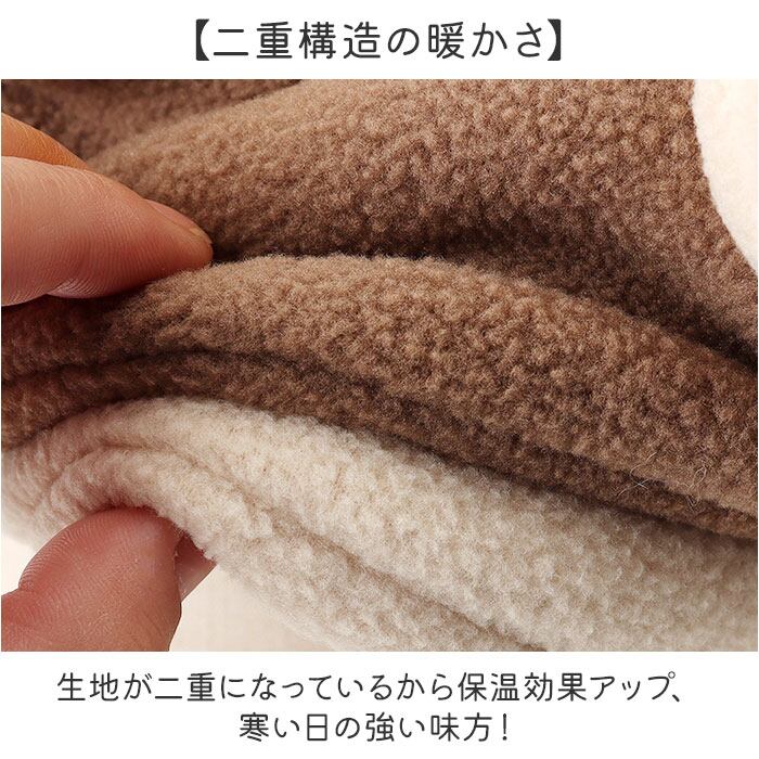 ・生地が二重になっているから保温効果アップ、寒い日の強い味方!