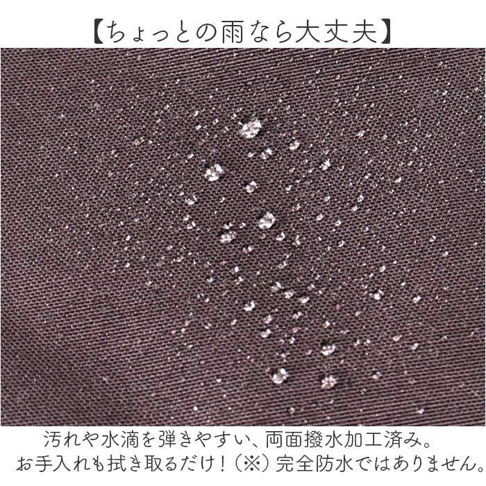 ・汚れや水滴を弾きやすい、両面撥水加工済み。お手入れも拭き取るだけ!