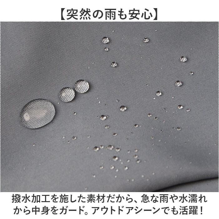 ・撥水加工を施した素材だから、急な雨や水濡れから中身をガード。アウトドアシーンでも活躍!