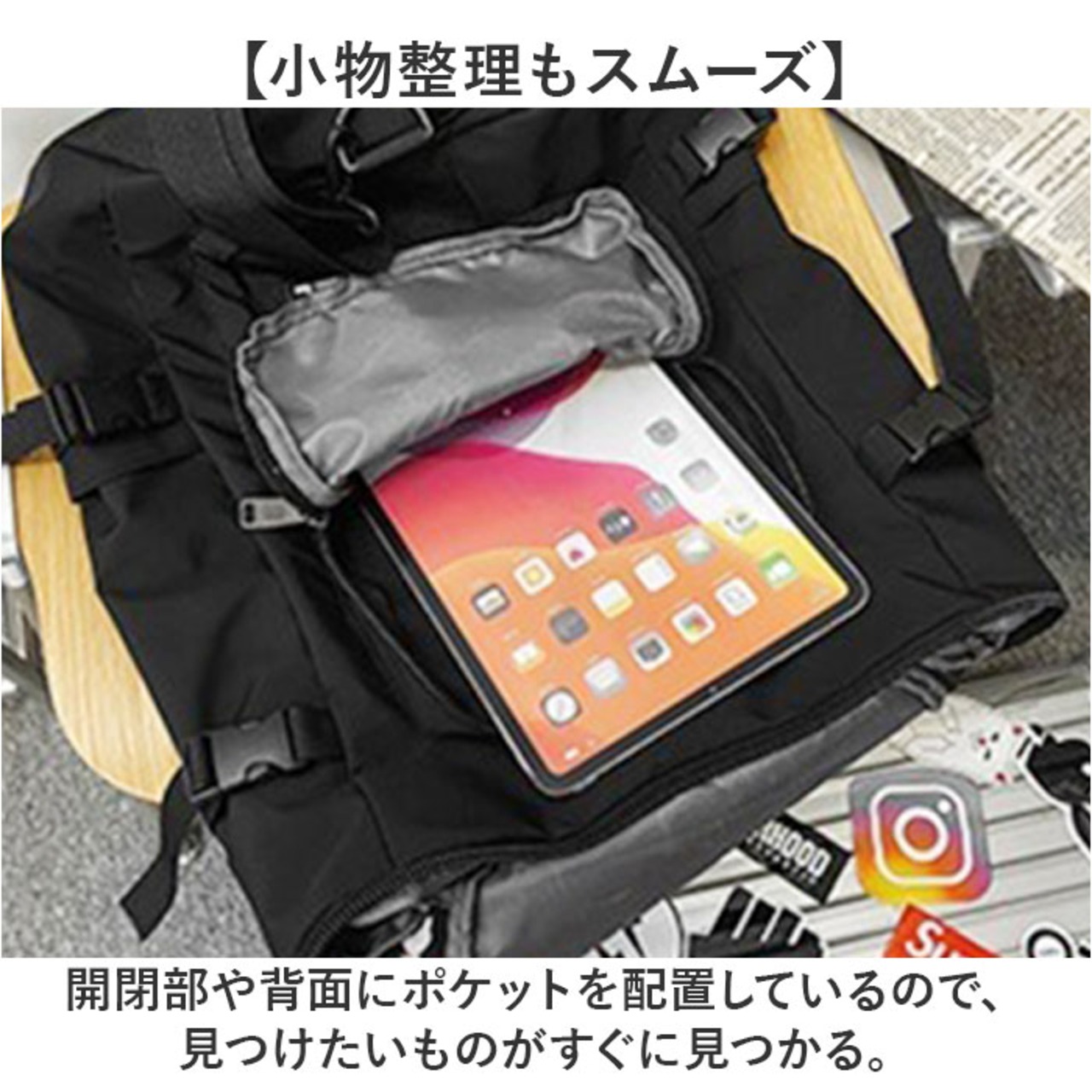 ・両サイドに500mlペットボトルや折りたたみ傘が入るポケット付き。水分補給や雨対策もスマートに。