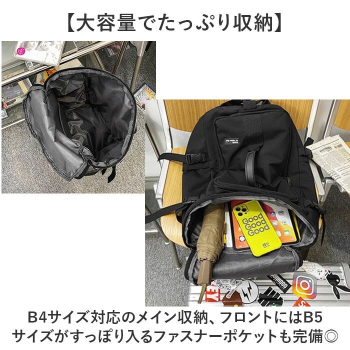 ・B4サイズ対応のメイン収納、フロントにはB5サイズがすっぽり入るファスナーポケットも完備◎