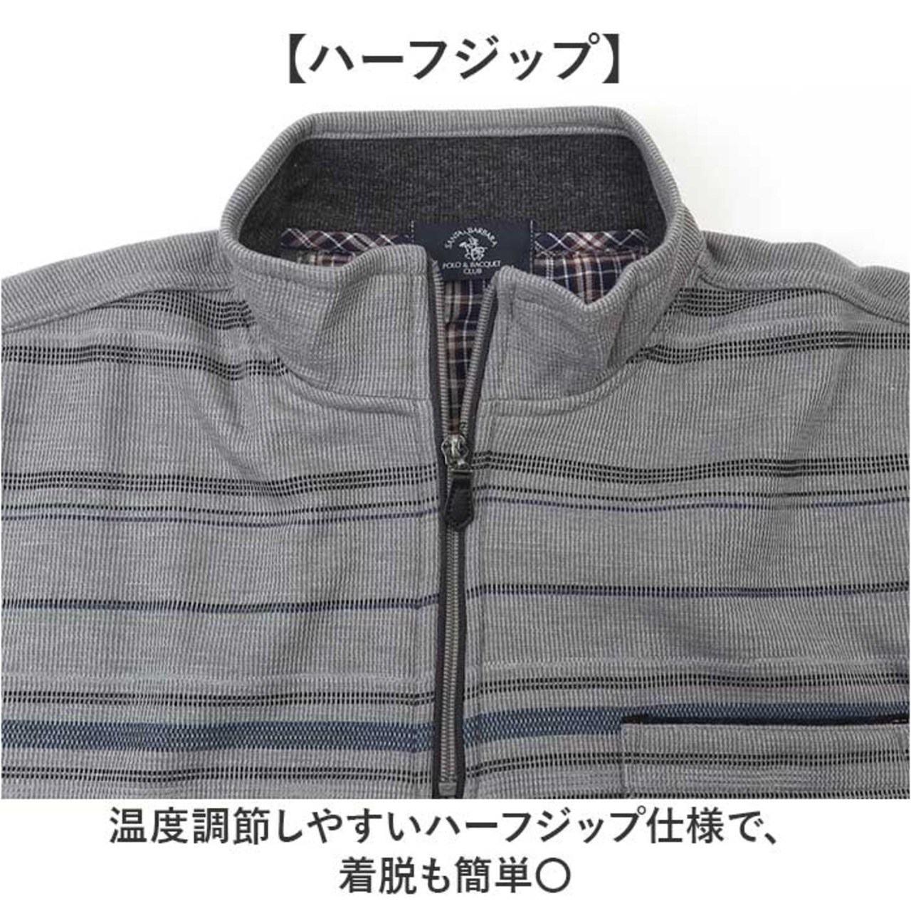 ・寒い季節も快適♪「SANTA BARBARA 裏起毛ハーフジップトレーナー」。