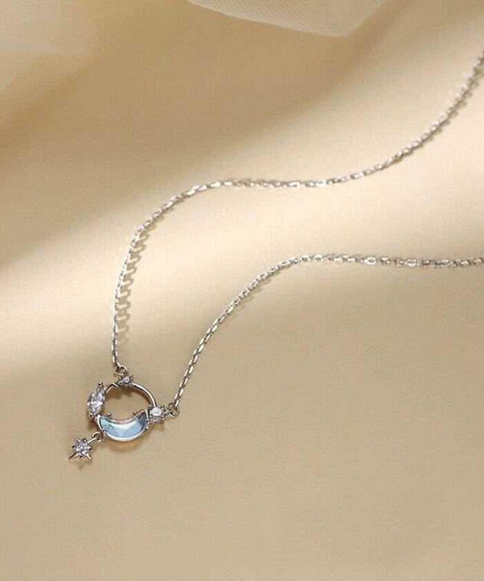 ・三日月とサザンクロスチャームがついた大人可愛いネックレス。