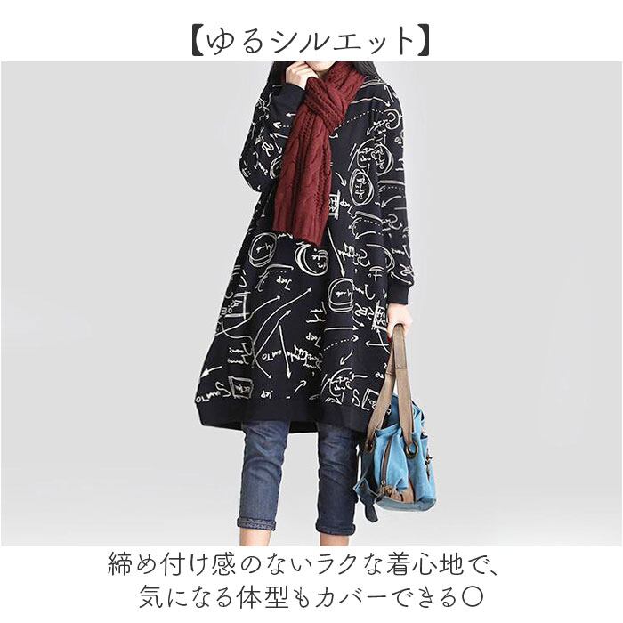 チュニック ワンピース 体型カバー 長袖 おしゃれ