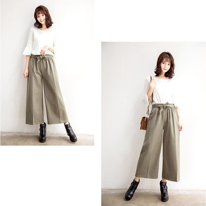 ワイドパンツ ボトムス ストライプ柄