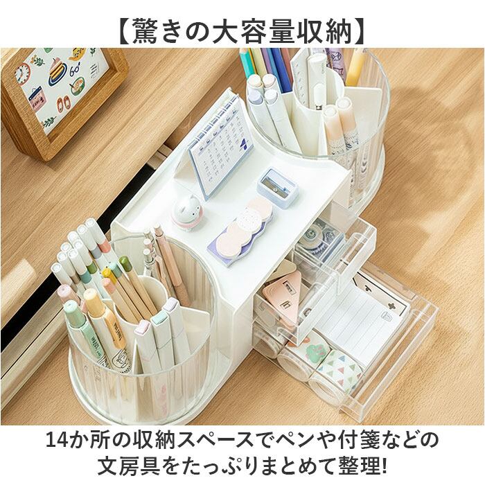 14か所の収納スペースでペンや付箋などの文房具をたっぷりまとめて整理!