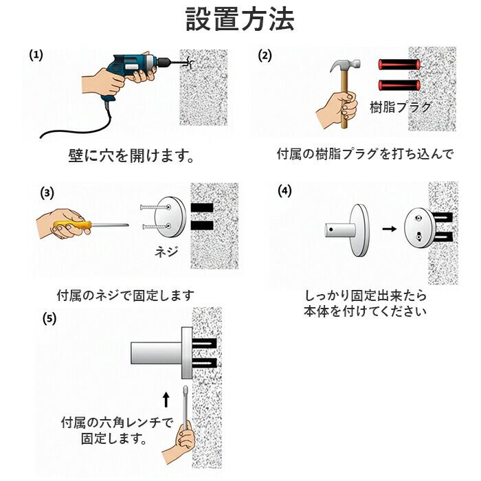 ・ネジ×2本、アンカープラグ×2本、六角レンチ×1本が付属。
