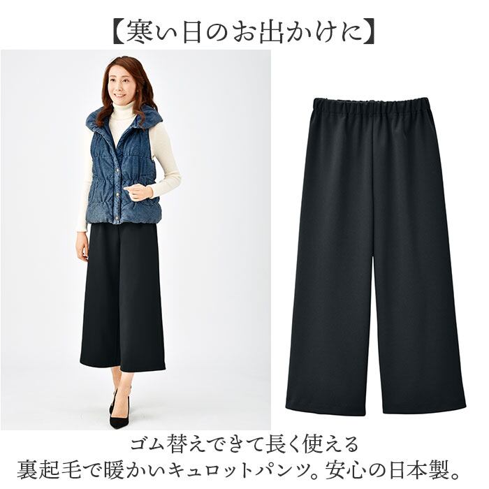 ・ゴム替えできて長く使える裏起毛で暖かいキュロットパンツ。安心の日本製。