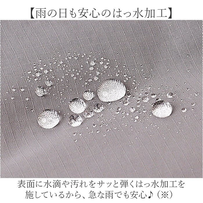 ・表面に水滴や汚れをサッと弾くはっ水加工を施しているから、急な雨でも安心♪
