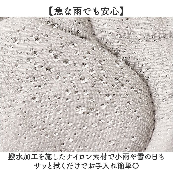 ・撥水加工を施したナイロン素材で小雨や雪の日もサッと拭くだけでお手入れ簡単〇