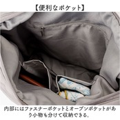 ・内部にはファスナーポケットとオープンポケットがあり小物も分けて収納できる。