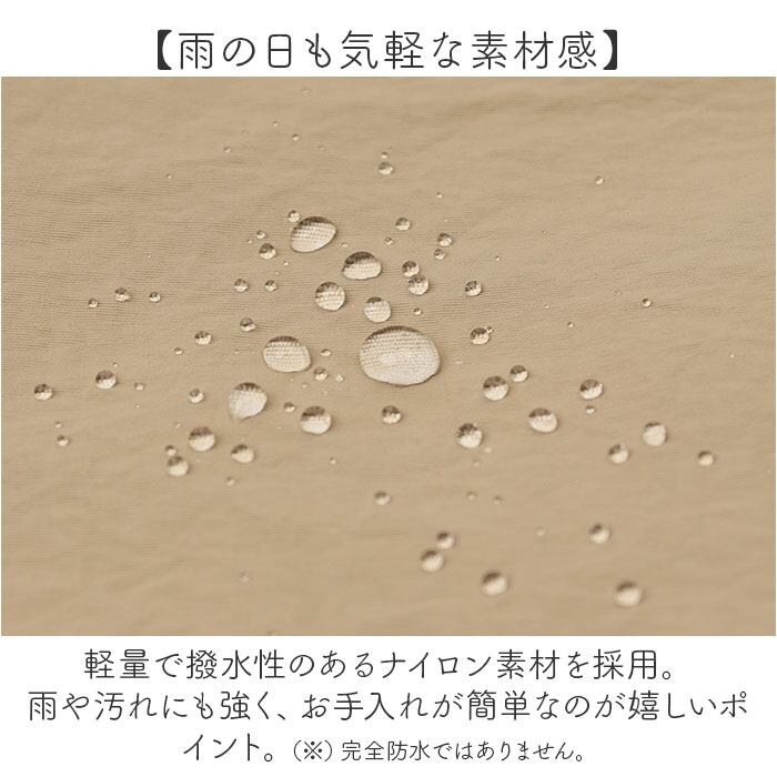 ・軽量で撥水性のあるナイロン素材を採用。雨や汚れにも強く、お手入れが簡単なのが嬉しいポイント。