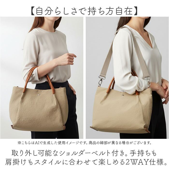 ・取り外し可能なショルダーベルト付き。手持ちも肩掛けもスタイルに合わせて楽しめる2WAY仕様。