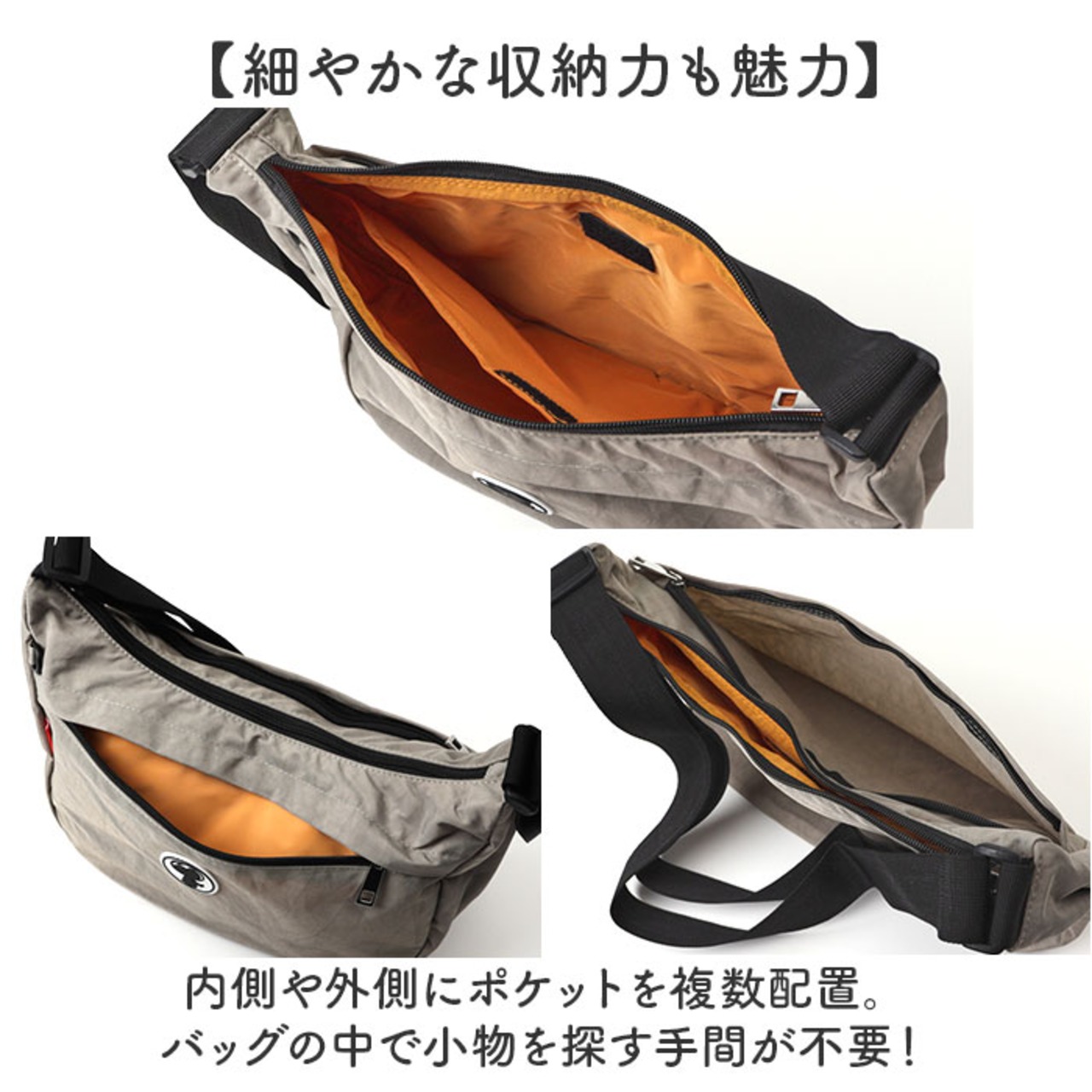 ・内側や外側にポケットを複数配置。バッグの中で小物を探す手間が不要!